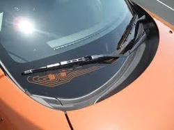 Visible on lower windshield (orange car): this zone warms the glass to prevent wipers from freezing in cold weather.