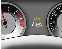 Alerts the driver when the vehicle begins to drift from its lane without signaling.